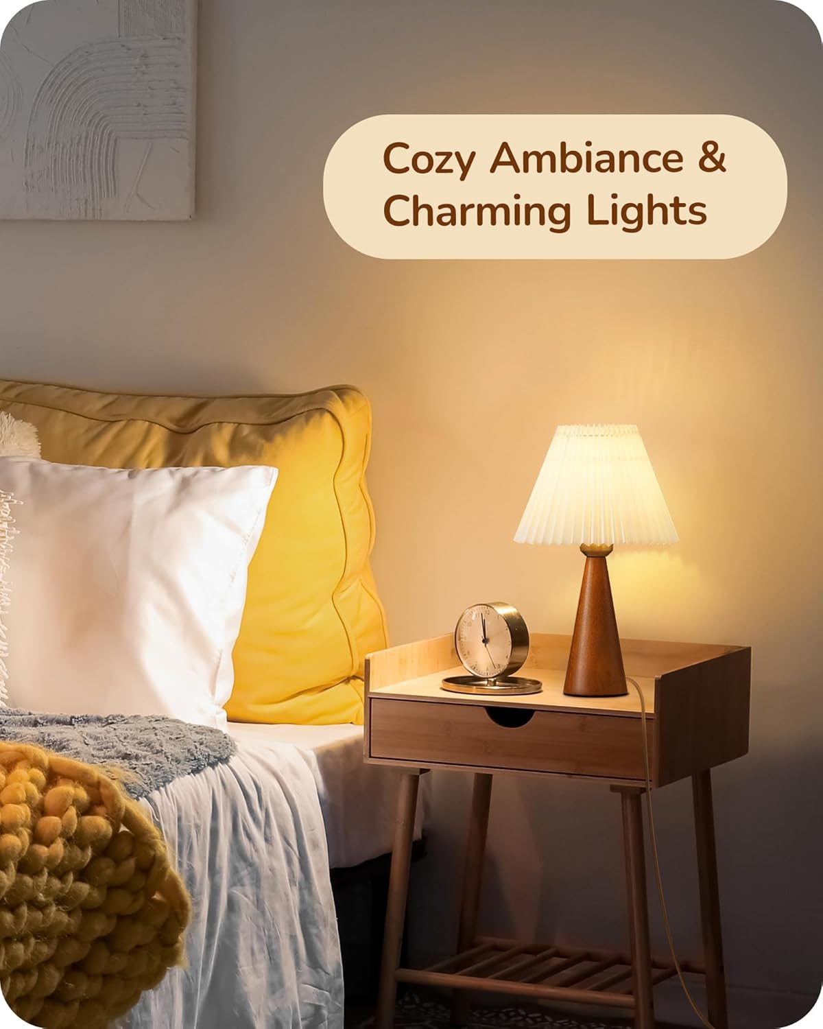 This little end table lamp is a big win for small spaces; with a chic combo of a solid wood base and a white pleated lampshade, it stands just 13.58 inches tall, perfect for kid's rooms, bedrooms, apartments, and dorms, it adds a modern touch without hogging space